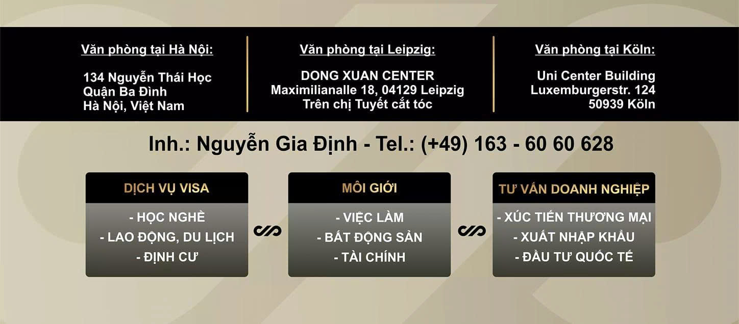 Uy tín và sự tin tưởng của mỗi 1 con người là động lực cho Dinh & Partners 10 năm qua luôn nỗ lực trên từng chặng đường để có những bước tiến tốt nhất cho mỗi lựa chọn sáng suốt nhất của mỗi 1 học viên. Chúng tôi tận tâm cho một mục tiêu đào tạo, huấn luyện các thế hệ học viên với mục tiêu đầu ra “Tinh thông nghiệp vụ, thành thục kỹ năng & thái độ sống, làm việc tích cực, phù hợp”. Học viên có thể lựa chọn công ty và ngành nghề phù hợp với sở thích cá nhân. Hỗ trợ tìm nhà ở và hướng dẫn thủ tục hành chính tại Đức. Hỗ trợ tìm việc làm thêm trong quá trình học tập. Kết nối cộng đồng du học sinh để giúp bạn hòa nhập nhanh chóng”.